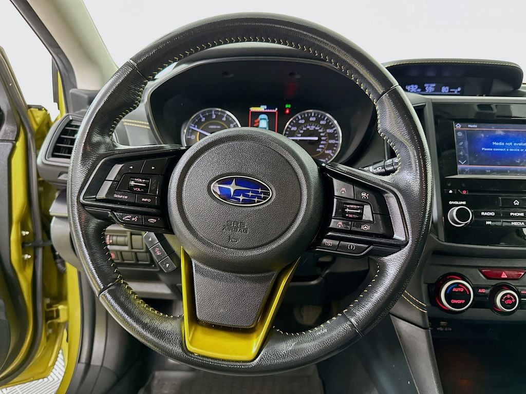 SUBARU CERTIFIED PRE-OWNED, Crosstrek Sport, 4D Sport Utility, 2.5L 4-Cylinder DOHC 16V, Lineartronic CVT, AWD, Plasma Yellow Pearl, Gray W/Yellow Stitching Premium Synthetic, 4-Wheel Disc Brakes, 6 Speakers, ABS brakes, Air Conditioning, All-Weather Floor Liners, AM/FM radio: SiriusXM, Automatic temperature control, Brake assist, Dual front impact airbags, Electronic Stability Control, Emergency communication system: STARLINK Safety and Security (Subscription Required), Exterior Parking Camera Rear, Four wheel independent suspension, Front Bucket Seats, Front Center Armrest, Front fog lights, Fully automatic headlights, Heated door mirrors, Heated Front Bucket Seats, Illuminated entry, Leather Shift Knob, Low tire pressure warning, Occupant sensing airbag, Outside temperature display, Overhead airbag, Panic alarm, Power door mirrors, Power steering, Power windows, Radio: Subaru STARLINK 6.5 Multimedia Plus System, Rear Seatback Protector, Remote keyless entry, Security system, Speed-sensing steering, Split folding rear seat, Standard Model, STARLINK/Apple CarPlay/Android Auto, StarTex Upholstery, Telescoping steering wheel, Tilt steering wheel, Wheels: 17 x 7.0J Alum Alloy Dark Gray Met Finish.