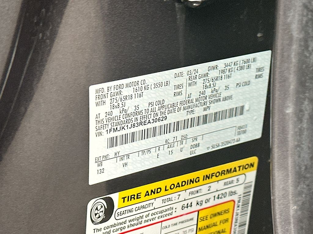 CLEAN CARFAX, ONE OWNER, BACKUP CAMERA, Bluetooth®,HANDS FREE,Bluetooth®,SYNC, KEYLESS ENTRY, 110V/150W AC Power Outlet, 2nd Row Power-Folding Captain's Chairs, 3rd Row Vinyl Power-Folding Head Restraints, 4-Door Intelligent Access (Lock/Unlock), Accent Color Painted Rear Bumper, ActiveX-Trimmed 1st & 2nd Row Seats, Advanced Security Pack, Ambient Lighting, Equipment Group 202A High Package, Heated Steering Wheel, Heated/Ventilated Front Seats, Navigation system: Connected Navigation, Power Liftgate, Power Tilt/Telescopic Steering Wheel w/Memory, Power-Adjustable Pedals w/Memory, Power-Folding Sideview Mirrors w/Autofold, Remote Start, SecuriCode Keyless Entry Keypad, Wireless Charging Pad.