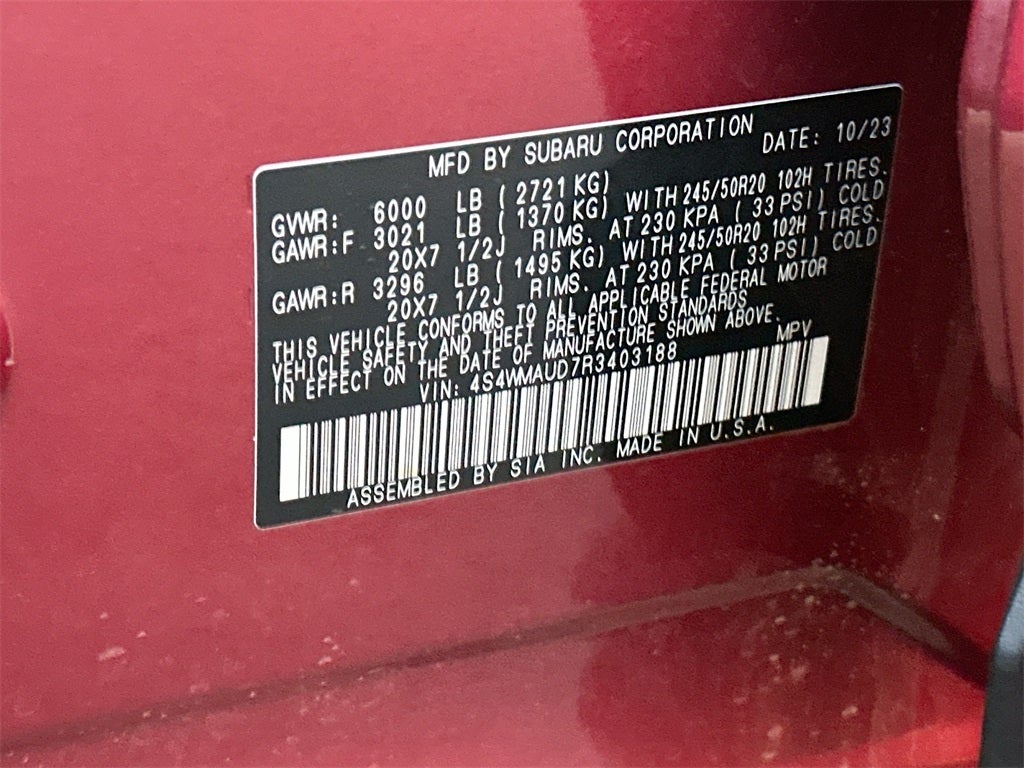 BACKUP CAMERA, KEYLESS ENTRY, LEATHER SEATS, Cabin Connect, Crystal Black Power-Folding Exterior Power Mirrors, Panoramic Power Moonroof w/UV/Drk Tint Dual Glass, Radio: Subaru STARLINK 11.6 Multimedia Nav System, Retractable Cargo Area Cover, Surround View Monitor System, Technology Package.